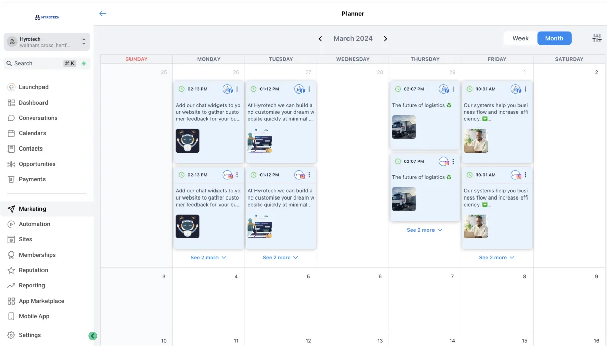 Our social planner is an easy tool to use. It can integrate with Instagram, TikTok, Facebook, X, LinkedIn and google my business. You will be able to schedule and publish your posts to all of the platforms listed above at once. This will save you so much time which you can spend doing more important things. You will be able to Merge all of your conversations and chats into one inbox to save you time going into all different apps chasing messages and going through junk. Have them all listed in one place with a little toggle showing where the message has come from.